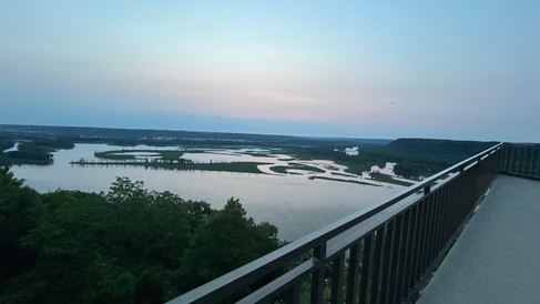 Looking out across the mighty Mississippi River, it’s impossible not to feel something. The bluffs rise effortlessly above the water, and the man-made structure at the overlook feels rooted in the land itself—growing with the peak, not disrupting it.